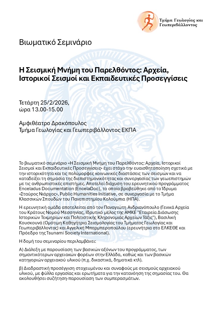 Μάθημα : ΓΕΩΛΟΓΙΑ ΚΑΙ ΓΕΩΠΕΡΙΒΑΛΛΟΝ- ΣΕΜΙΝΑΡΙΑ/ ΔΡΑΣΕΙΣ ΤΜΗΜΑΤΟΣ
