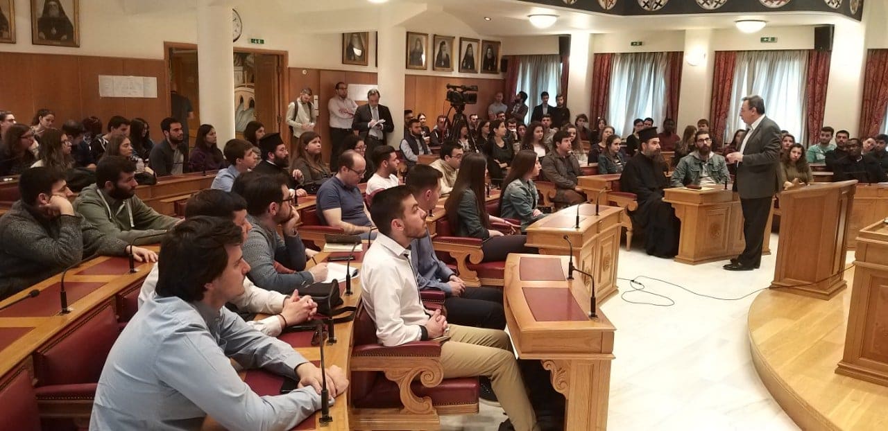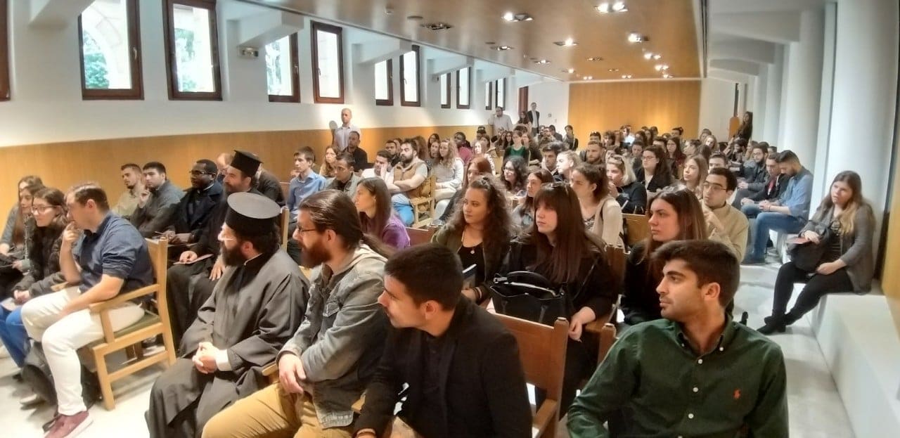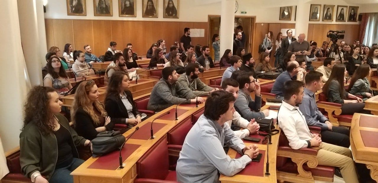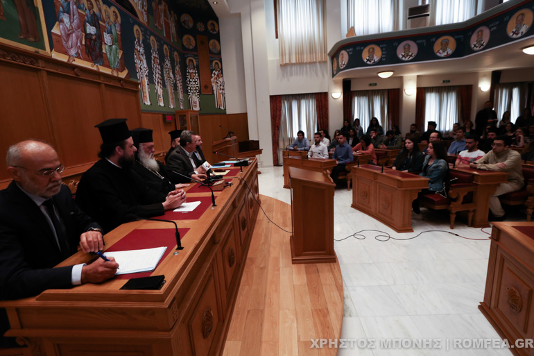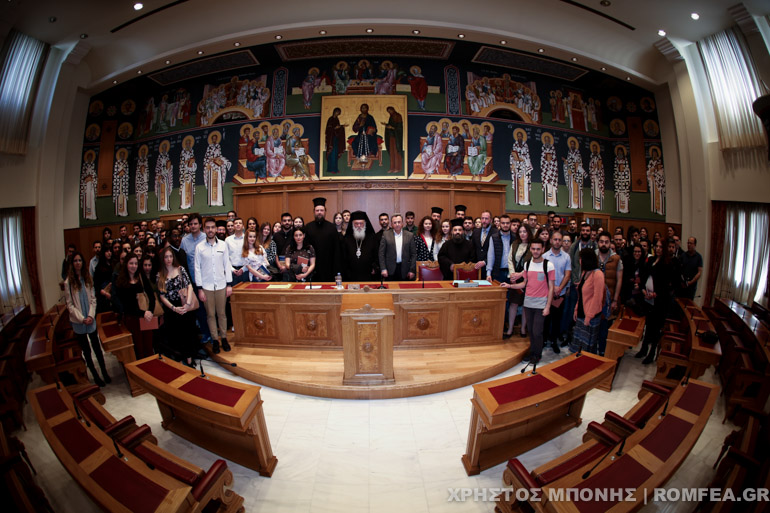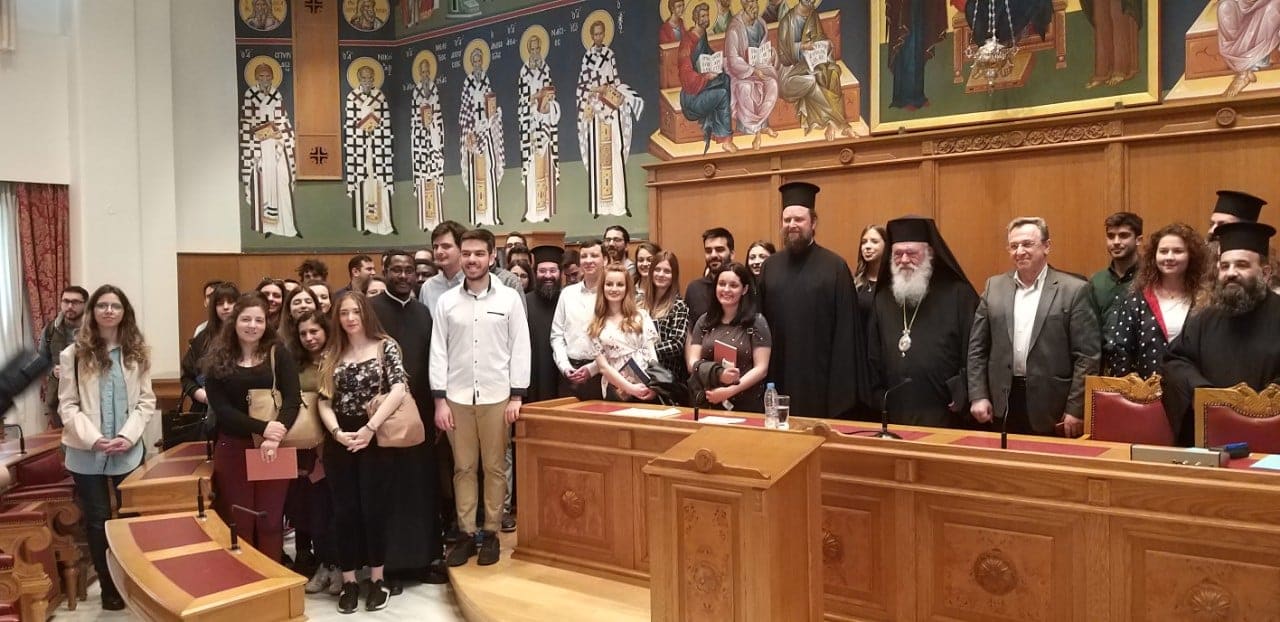 Η υποδοχή των φοιτητών και φοιτητριών πραγματοποιήθηκε σε εγκάρδια ατμόσφαιρα στην μεγάλη Αίθουσα της Ιεραρχίας. Ο Μακαριώτατος στον μεστό χαιρετισμό του τόνισε τη σημασία που έχουν οι εκπαιδευτικές αυτές επισκέψεις στον κεντρικό διοικητικό χώρο της Εκκλησίας της Ελλάδος, αφού αποτελούν ευκαιρίες γνωριμίας, αλληλοκατανόησης και ανοίγουν διαύλους